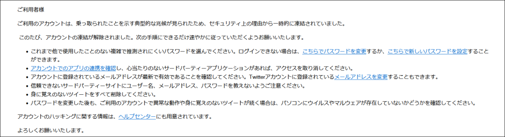 変に色々な所からアクセスの履歴があると乗っ取りと判断するには十分な内容なのかなと思ったので。。。。